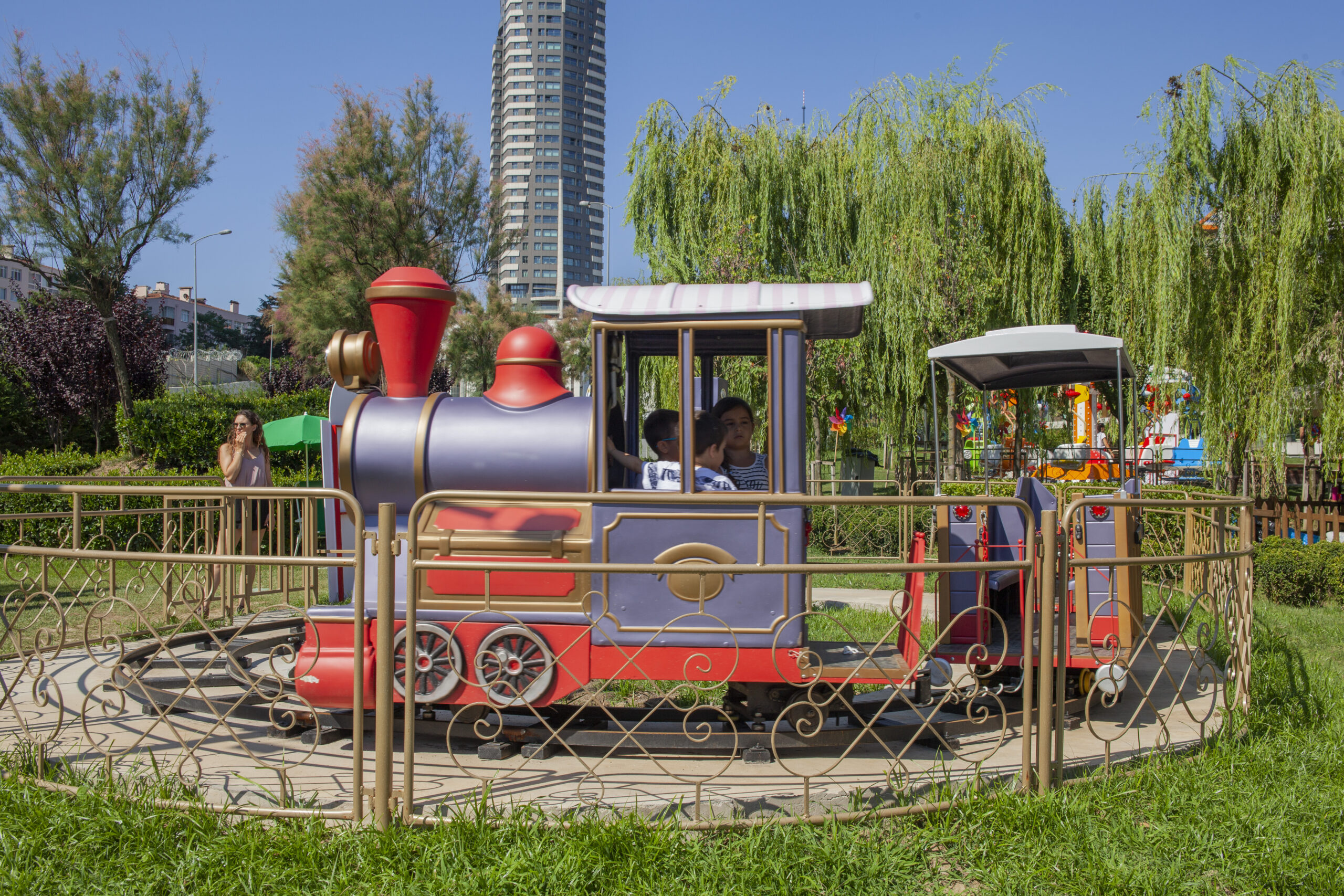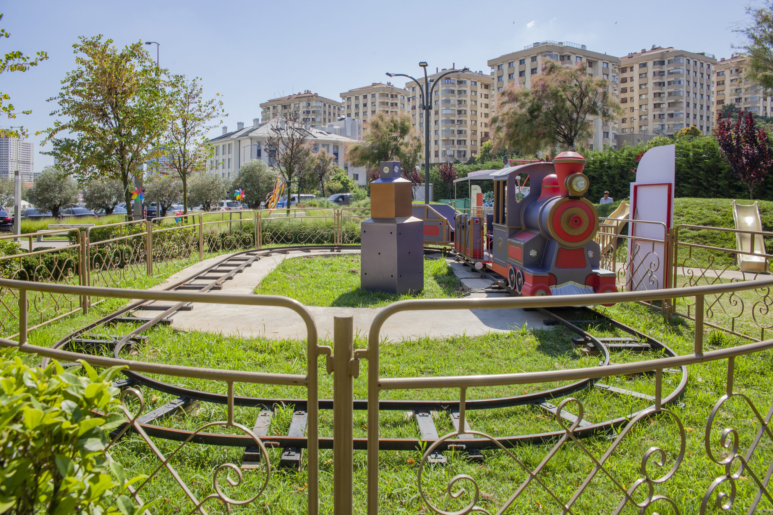Size – Adjustable Standart Track Size – 4 x 11 m Weight – 450 kg Vehicles – 1 Locomotive + 2 Vagon Motive Power – 48 Volt DC 2100 Watt Lightning – 0,75 kW Motion Power – 220 volt – 50 Hz