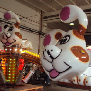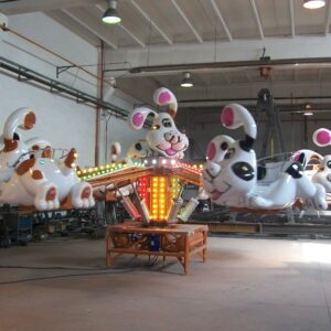 Base Diameter – 9 m. Height – 4 m. Weight – 2,350 kg. Vehicles – 6 Passengers – 12 Motive Power – 3 kW + 5 kW compressor Lightning – 3 kW – on request Motion Power – 380 volt – 50 Hz Rotation Speed – 8 – 10 RPM
