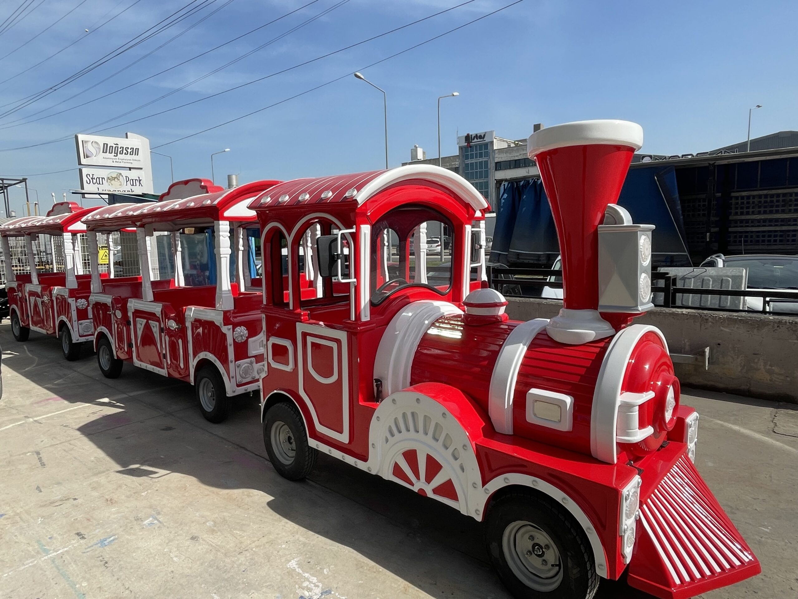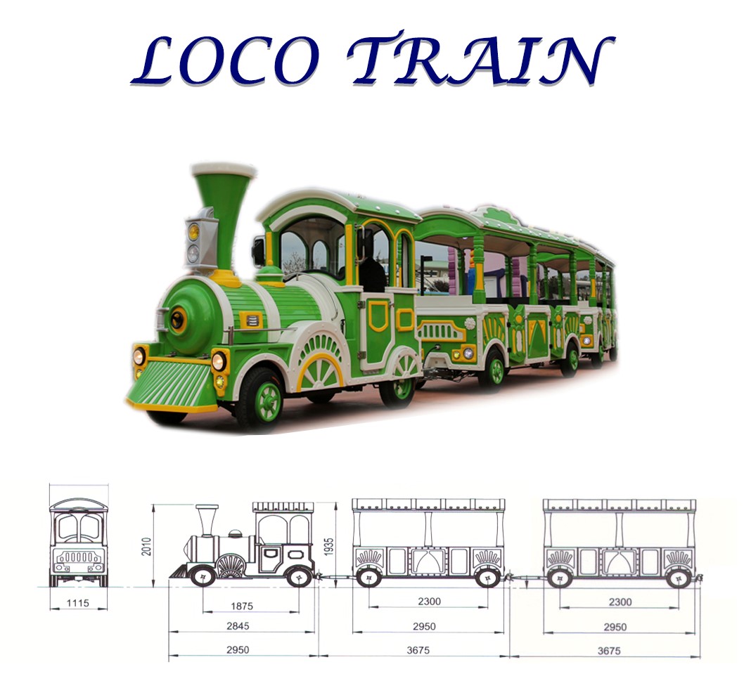 1 Locomotive+ 2 Vagon Battery – 5 hours Charge – Min. 8 hours Speed – 20 km/h Capacity – 18 Motion Power – 3 kW Lightning – 1 kW – on request Motive Power – 48 volt – 320 Amper