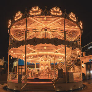 Base Diameter – 6,60 m. Height – 4,05 m. Weight – 4,500 kg. Vehicles – 14 – on request Seating – 16 Motive Power – 4 kW Lightning – 4 kW – on request Motion Power – 380 volt – 50 Hz