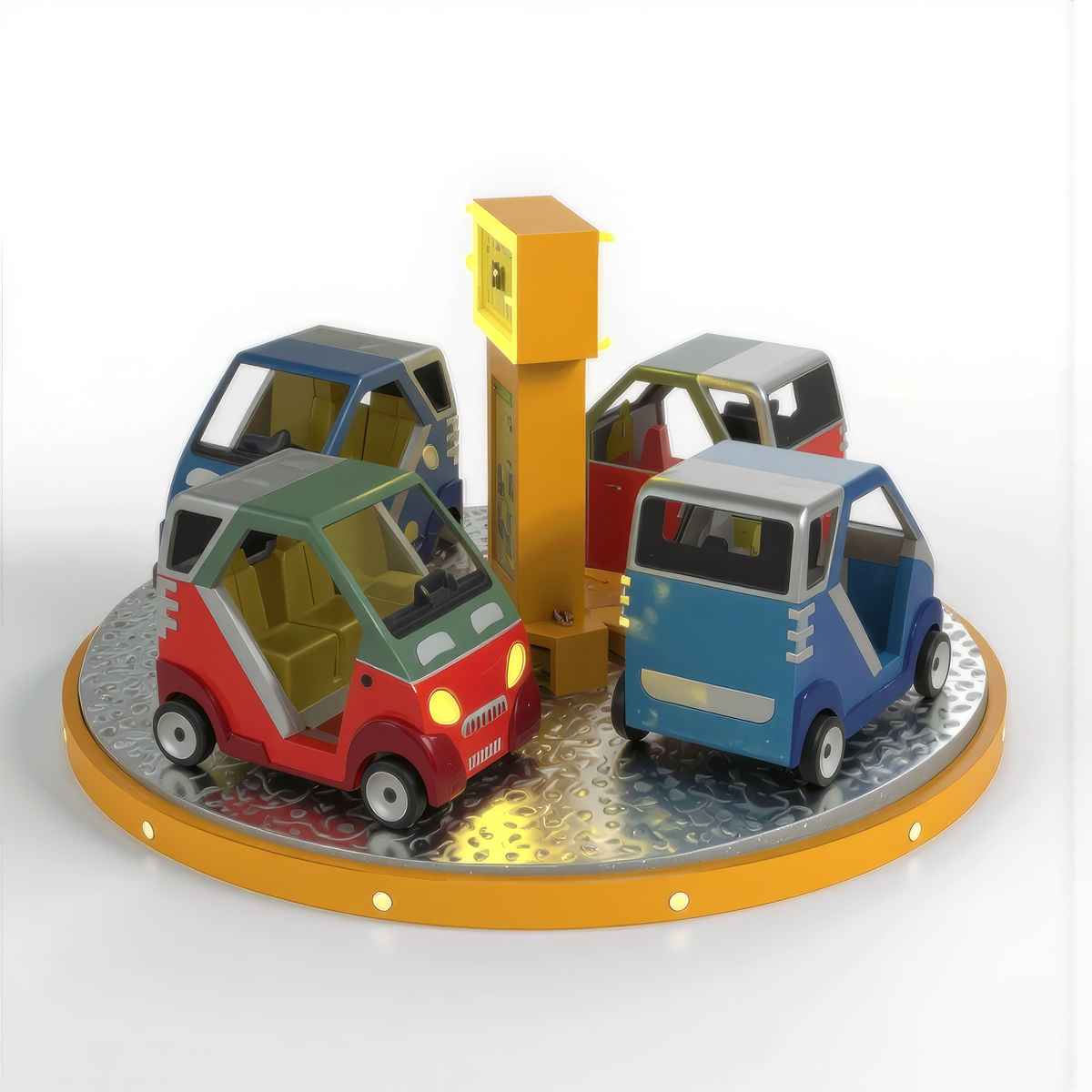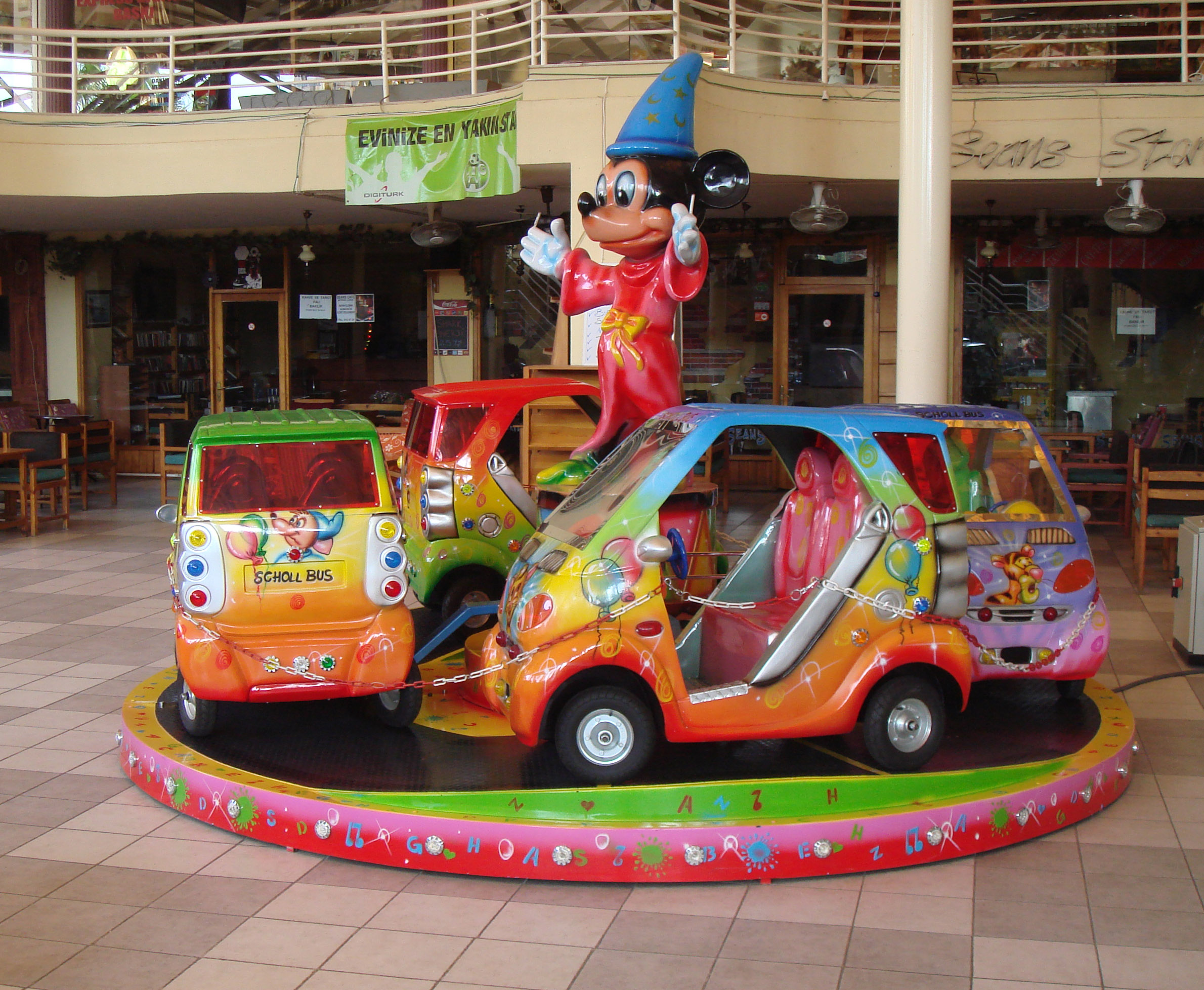 Base Diameter – 4 m Height – 2,50 m Weight – 800 kg Vehicle – 4 Cars Seat – 8 Motive Power – 2.2 kW Lightning – 1 kW – on request Motion Power – 220 volt – 50 Hz